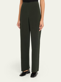 Vince elegant biascut crepe pants Model's height is 5' 0", bust 32", waist 24", hips 35". Model wears a size S. Elasticized waistband High rise Flat front Wide legs Cropped at the ankle Pullon style Acetate/polyester Hand wash or dry clean Imported