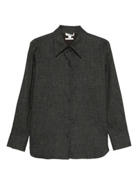 button-down shirt Highlights - Dark grey - Textured finish - Collared neckline - Long sleeves - Front button fastening - Straight hem Made in Italy Composition Viscose 51%, Linen/Flax 26%, Wool 22%, Elastane 1% SIZE & FIT Model measurements Height 5 ft 10 in(1.78 m) Bust/Chest 31.49 in(80 cm) Hips 37 in(94 cm) Waist 23.62 in(60 cm) Washing instructions Read Manufacturer Guidelines
