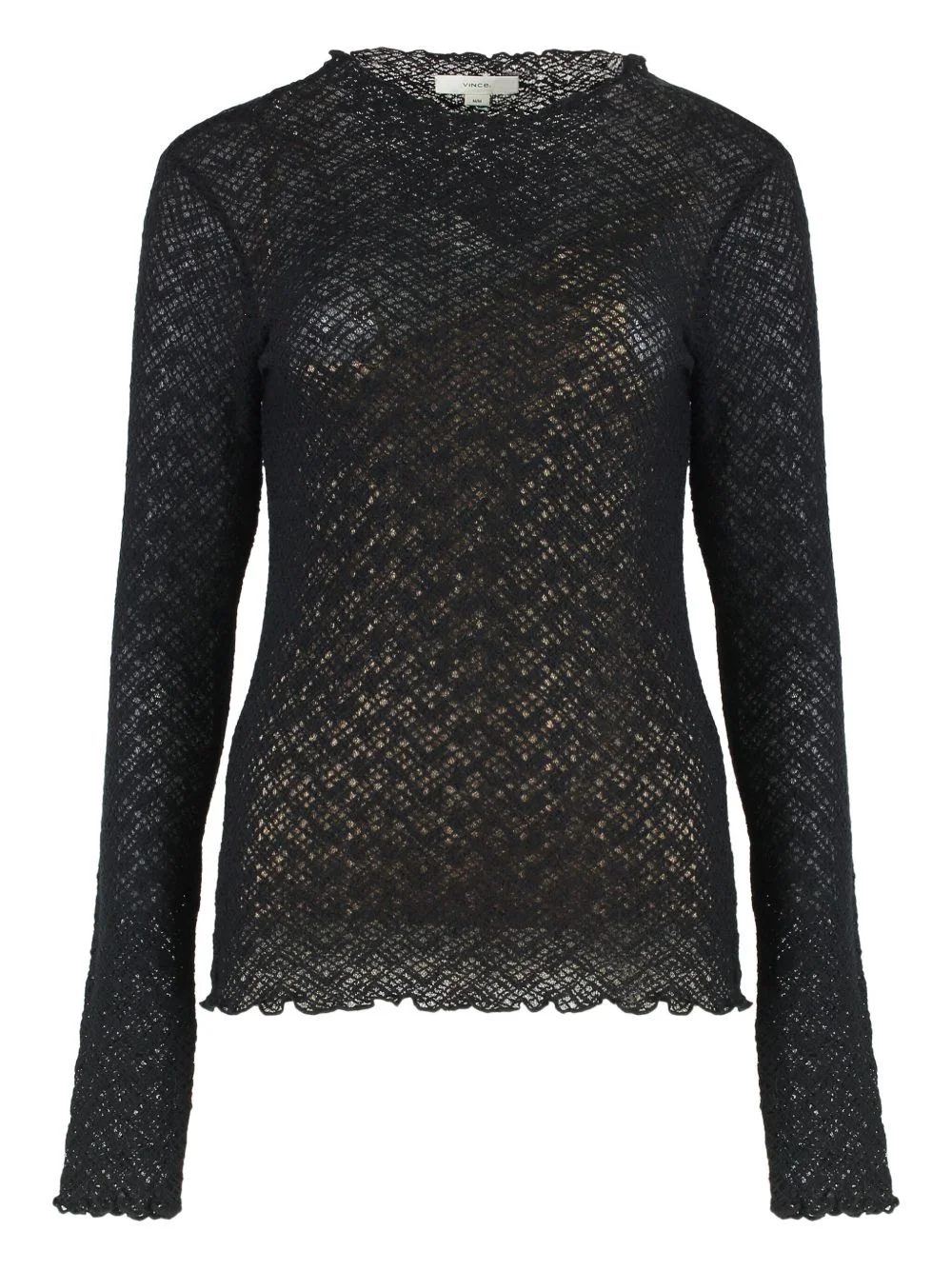 long-sleeved diamond-lace top Highlights - Black - Long sleeves - Scalloped trim Imported Composition Outer: Cotton 61%, Nylon 38%, Spandex/Elastane 1% Lining: Lyocell 95%, Spandex/Elastane 5% Washing instructions Read Manufacturer Guidelines