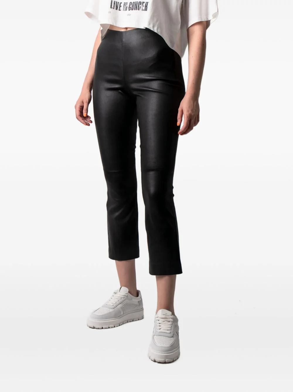 leather flared trousers