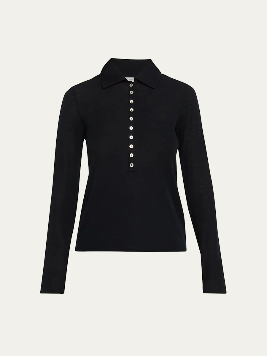 Long-Sleeve Fine Wool Buttoned Top