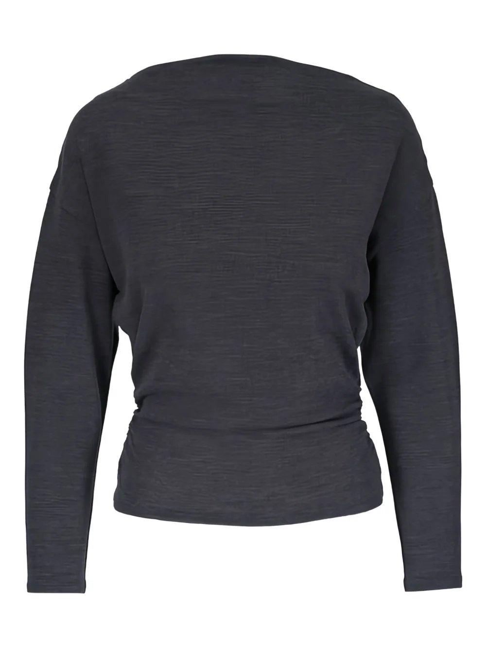 long-sleeve sweater Highlights - Dark grey - Long sleeves - Boat neck - Gathered detail Made in United States Composition Wool 59%, Acrylic 41% Washing instructions Read Manufacturer Guidelines