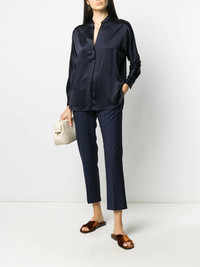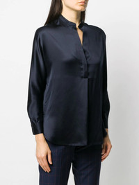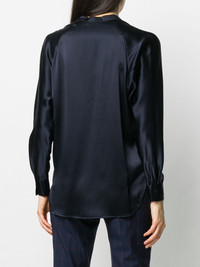 long-sleeved open front blouse Highlights - Navy - Silk - Round neck - Long sleeves - Straight hem - Lightweight construction Made in United States Composition Silk 100% SIZE & FIT Model measurements Height 5 ft 10 in(1.78 m) Bust/Chest 31.49 in(80 cm) Hips 36.22 in(92 cm) Waist 25.59 in(65 cm) Measurement LENGTH 27.16 in(69 cm) BUST 41.33 in(105 cm)