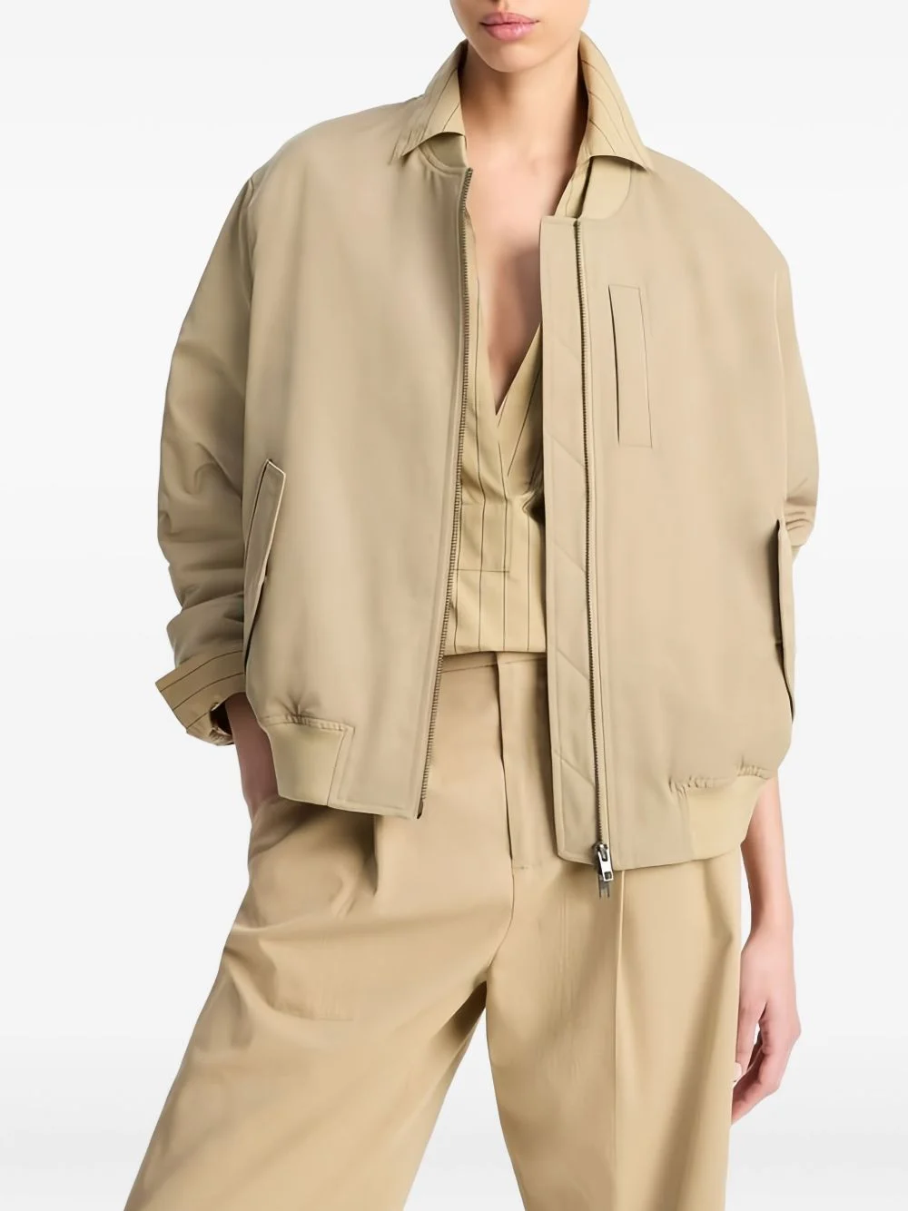 long-sleeves bomber jacket Highlights - Beige - Zip fastening - Ribbed hem - Ribbed cuffs - Baseball collar - Chest pocket Imported Composition Outer: Polyester 100% Lining: Cotton 100%, Polyester 55%, Viscose 45% Washing instructions Read Manufacturer Guidelines