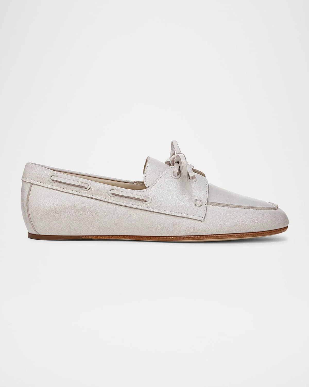 - Vince "Marin" boat loafers crafted from supple leather - 0.25 in / 10 mm flat heel - Round moc toe - 360-degree lacing - Slip-on style - Leather outsole - Lining: Leather - Imported