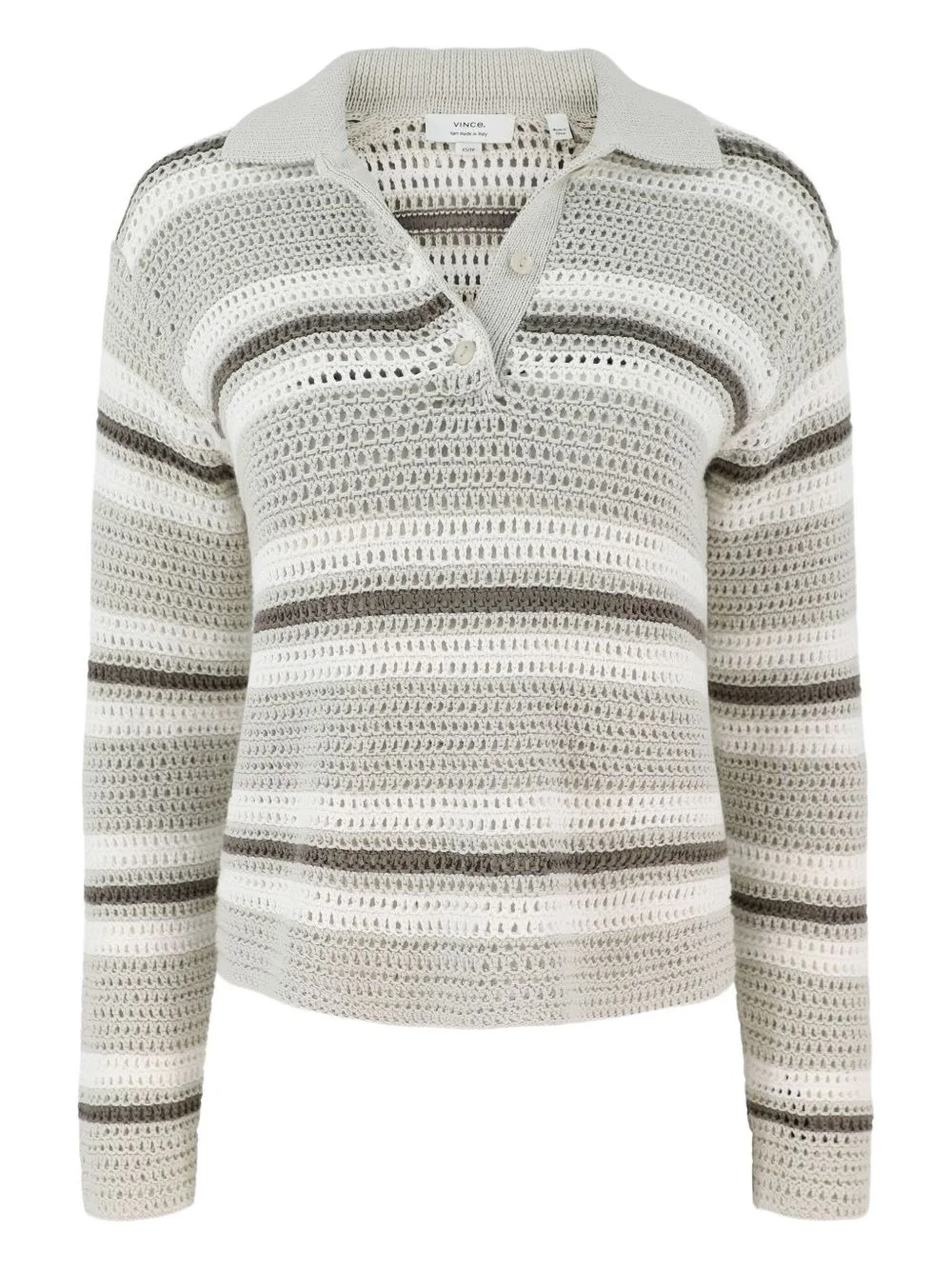 striped mesh polo shirt Highlights - Beige - Open-knit design - Three-button placket - Horizontal stripes - Long sleeves - Ribbed polo collar Made In Italy Composition Cotton 100% Washing instructions Read Manufacturer Guidelines