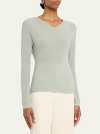Metallic Ribbed V-Neck Sweater