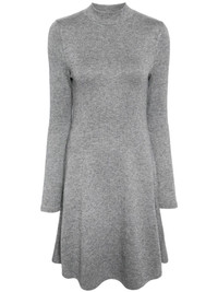 high-neck flared knit dress Highlights - Grey - Stretch-design - Knitted construction - High neck - Long sleeves - Flared - Above-knee length Imported Composition Body: Rayon 50%, Polyester 27%, Nylon 21%, Spandex/Elastane 2% SIZE & FIT Model measurements Height 5 ft 10 in(1.77 m) Bust/Chest 31.49 in(80 cm) Hips 35.43 in(90 cm) Waist 25.19 in(64 cm) Measurement SLEEVE LENGTH 24.4 in(62 cm) HIPS 43.3 in(110 cm) LENGTH 37.4 in(95 cm) WAIST 33.07 in(84 cm) FittingInformation Designed for a slim fit that sits just away from the body offering a close yet comfortable fit Made with a midweight knit, this piece offers some stretch This piece fits true to size – take your usual size