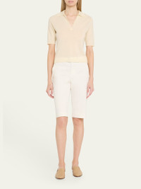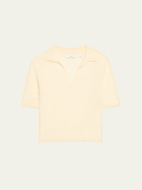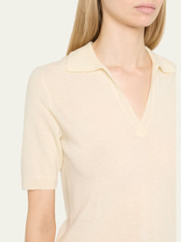 Vince polo top crafted from a luxurious blend of mulberry silk and cashmere Point collar; V neckline Short sleeves Classic fit Hem sits at the hip Pullover style Cashmere/mulberry silk Dry clean Imported