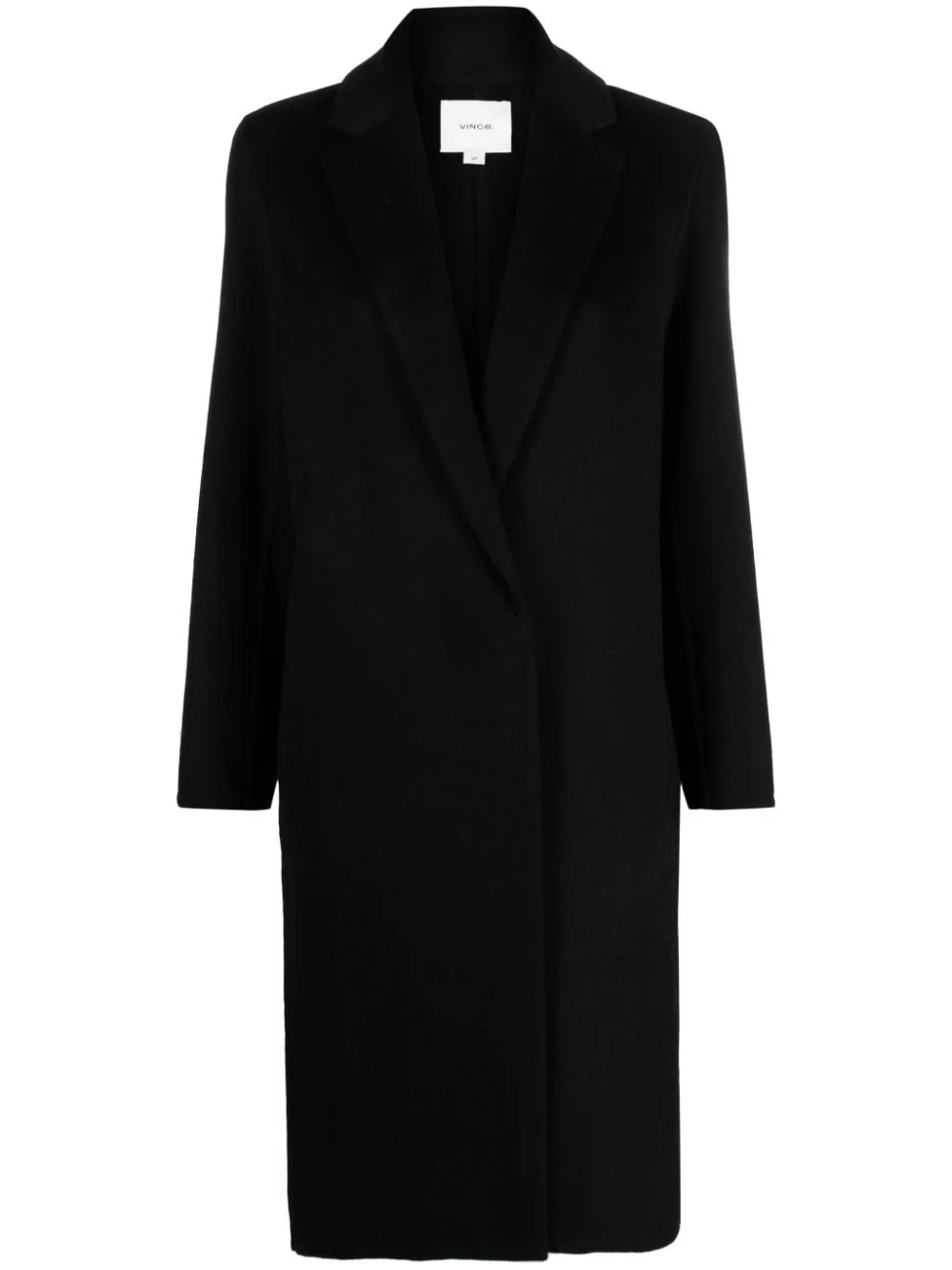 notched-lapel trench coat Highlights - Black - Recycled wool blend - Notched lapels - Concealed front button fastening - Long sleeves - Straight hem Imported Composition Outer: Recycled Wool 55%, Polyester 40%, Nylon 4%, Viscose 1% Lining: Polyester 100% SIZE & FIT Model measurements Height 5 ft 11 in(1.8 m) Bust/Chest 31.88 in(81 cm) Hips 35.03 in(89 cm) Waist 24.01 in(61 cm) FittingInformation Designed to be unstructured, offering a loose fit throughout The vented hem offers movement at the rear Made from a midweight non-stretch fabric This piece fits true to size – take your usual size Washing instructions Dry Clean Only