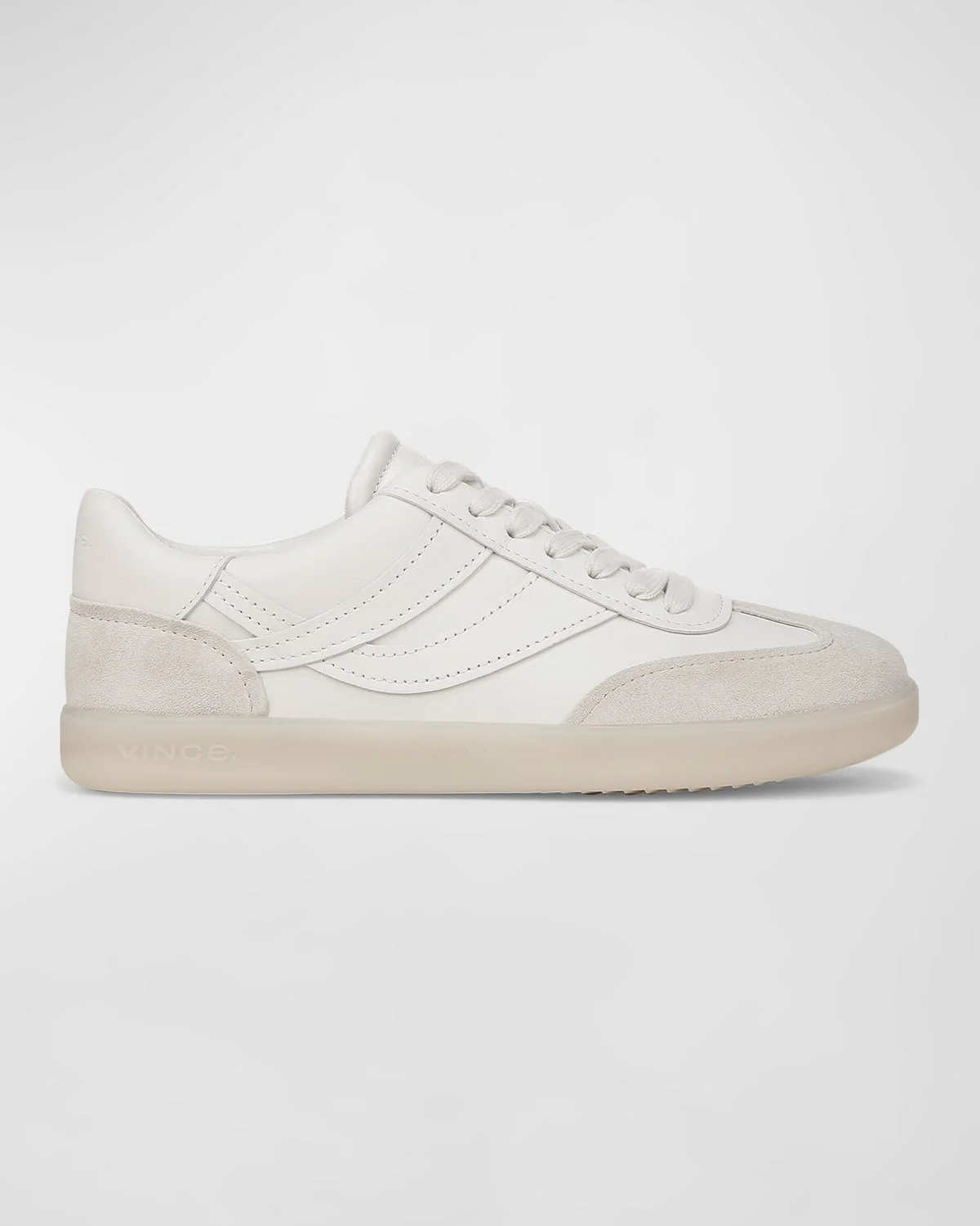 - Vince "Oasis" low-top bicolor leather and suede retro sneakers - 1.25 in / 30 mm flat heel - Round toe - Lace-up vamp - Rubber outsole - Lining: Leather - Professional cleaning recommended - Imported - Our Oasis sneakers meet the One Planet Standard.