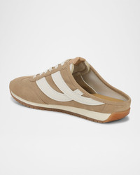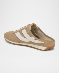- Vince "Oasis" low-top mule sneakers in supple suede with overlapping side-stripe accents - 0.25 in / 10 mm flat heel - Round reinforced toe - Lace-up vamp - Slip-on style - Rubber outsole - Lining: Leather - Spot clean - Imported - Shipping - Direct from Vendor, usually ships within 7 business days.