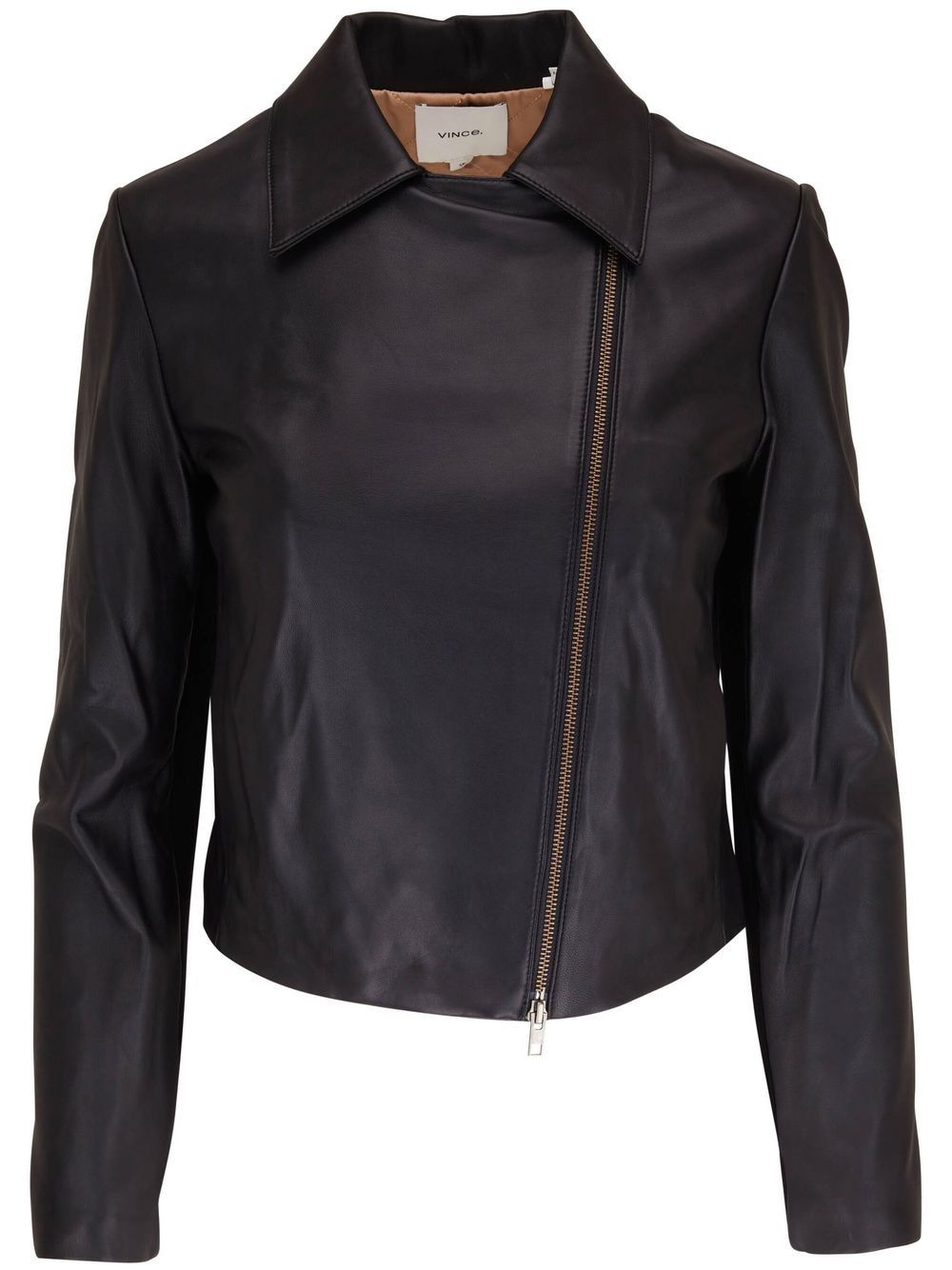 Description off-centre zip jacket Highlights ['* black', '* leather', '* off-centre front zip fastening', '* long sleeves and straight hem.'] Made in United States Composition Leather 100%