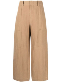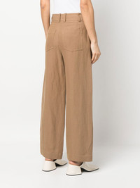 one tone-patch wide-leg trousers brown wide leg straight leg belt loops two rear patch pockets concealed fly and button fastening straight hem Made in Italy Composition Rayon 52%, Linen/Flax 48% SIZE & FIT Model measurements Height 5 ft 11 in(1.8 m) Bust/Chest 33.07 in(84 cm) Hips 37.4 in(95 cm) Waist 25.19 in(64 cm) FittingInformation This piece fits true to size. We recommend you get your regular size Designed to be fitted at the waist and hips, loose over the leg Made with a mid-weight non-stretch fabric Washing instructions Dry Clean Only