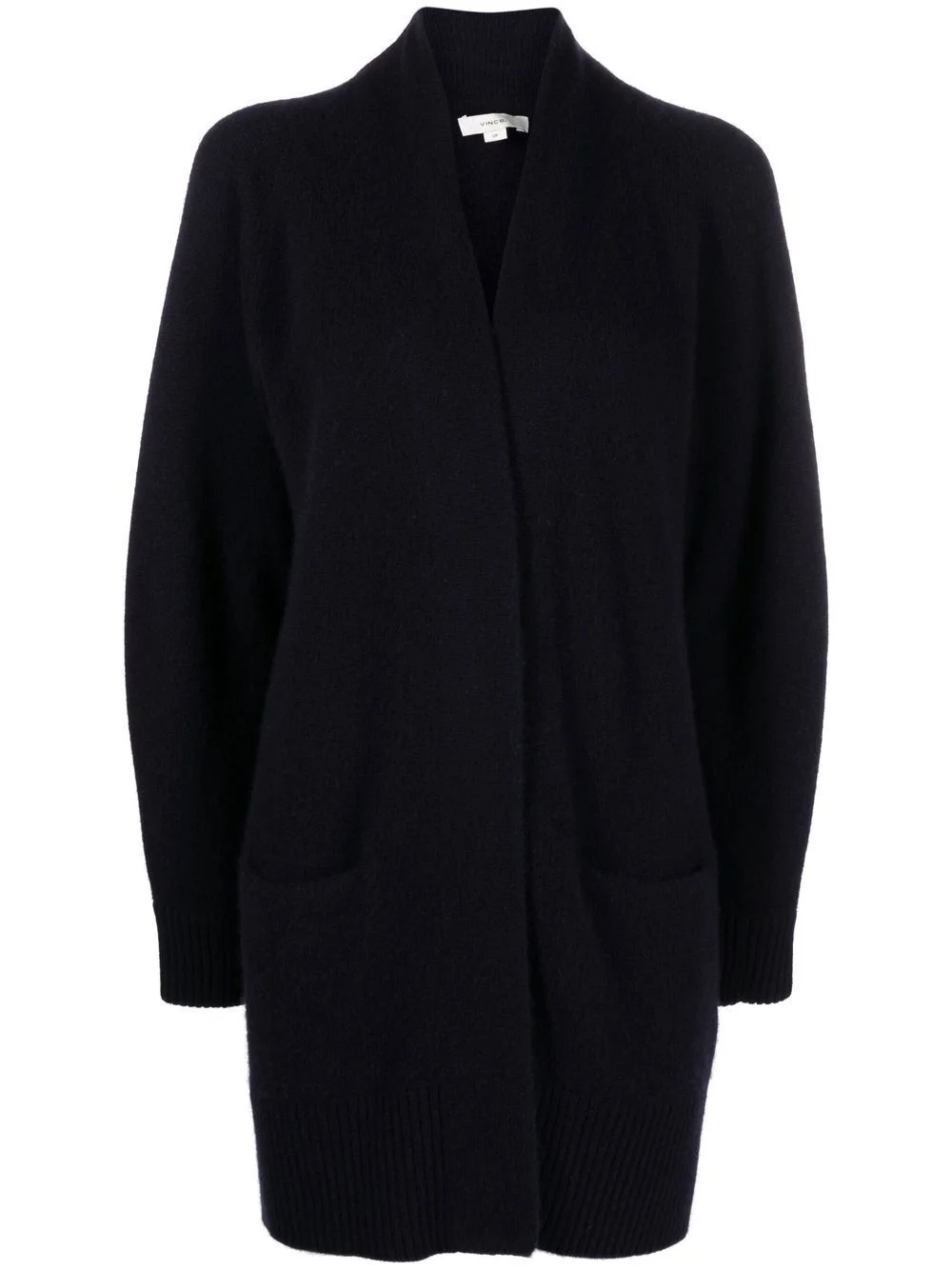 open-front cashmere cardigan In plush cashmere, this 'Coastal' blue cardigan by Vince is effortlessly elegant. Styled with long dolman sleeves, the relaxed, open front design is complete with ribbed knit trims. Highlights - Navy blue - Cashmere - Slip-on style - Open front - Long sleeves - Two front patch pockets - Straight hem - Ribbed trim Imported Composition Cashmere 100% SIZE & FIT Model measurements Height 5 ft 10 in(1.79 m) Bust/Chest 31.49 in(80 cm) Hips 35.03 in(89 cm) Waist 23.62 in(60 cm) Measurement CHEST 41.73 in(106 cm) LENGTH 31.1 in(79 cm) WAIST 40.15 in(102 cm) SLEEVE LENGTH 20.86 in(53 cm) HIPS 41.73 in(106 cm) FittingInformation This piece fits true to size. We recommend you get your regular size Cut for a loose fit Made with a mid-weight fabric Washing instructions Hand Wash