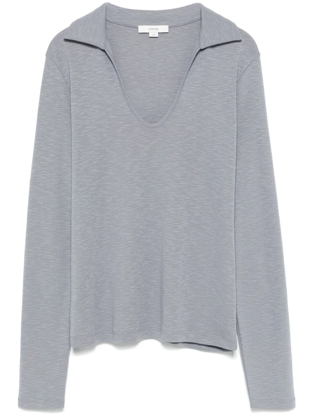 open-neck long-sleeve polo top