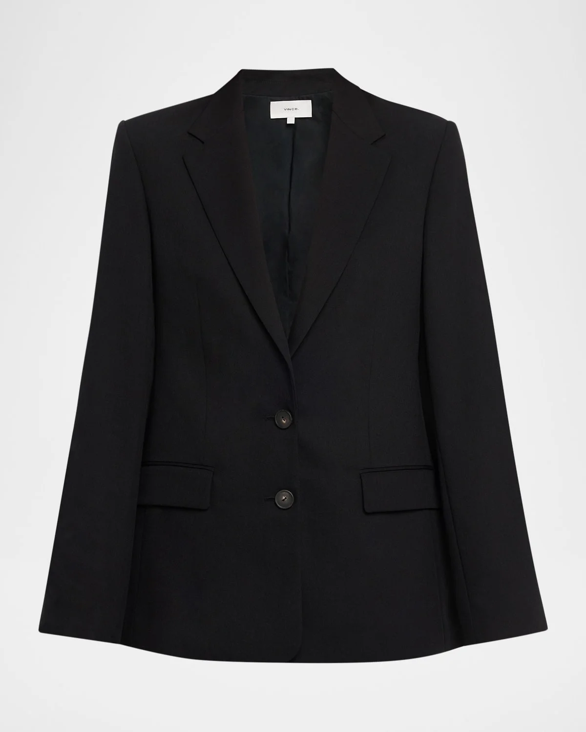 Vince solid singlebreasted blazer Notch lapels Long sleeves with button cuffs Hip flap pockets Oversized fit Buttonfront Viscose/polyester Lining: Cotton/polyester/viscose Dry clean or machine wash cold Imported