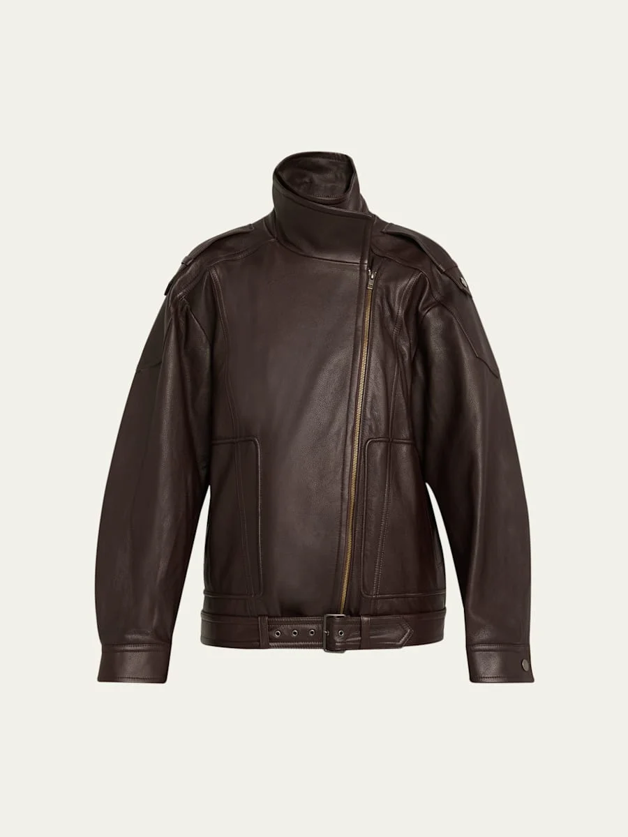 Oversized Leather Aviator Jacket