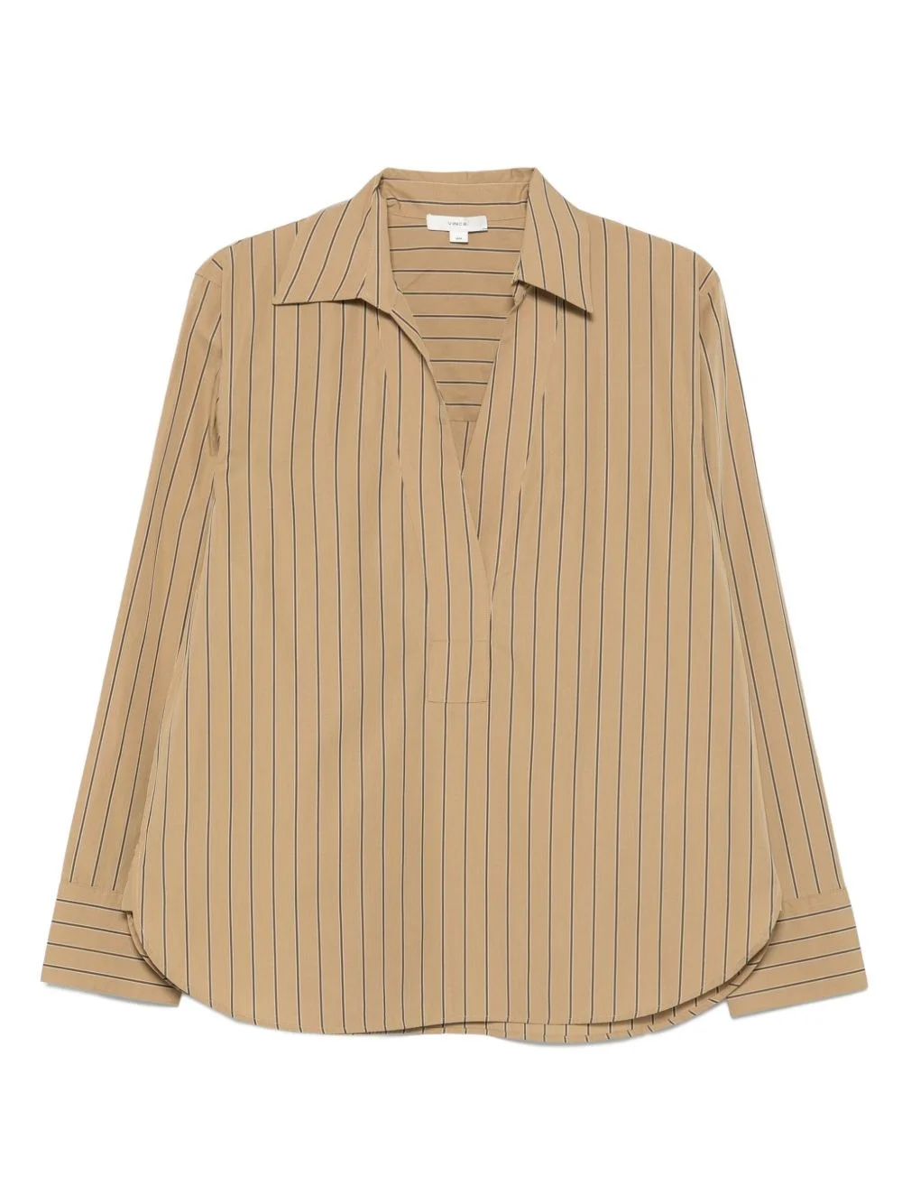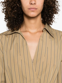 pinstripe cotton tunic Highlights - Brown - Pinstripe pattern - V-neck - Long sleeves - Buttoned cuffs Imported Composition Cotton 100% SIZE & FIT Model measurements Height 5 ft 10 in(1.79 m) Bust/Chest 31.88 in(81 cm) Hips 35.43 in(90 cm) Waist 23.62 in(60 cm) Washing instructions Machine Wash