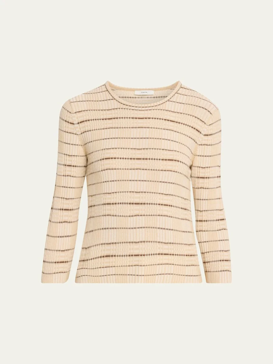 Vince plaid sweater crafted from a luxurious, ribbed cashmereblend Crew neckline Elbowlength sleeves Classic fit Hem sits at the hip Pullover style Cotton/wool/cashmere Hand wash Imported