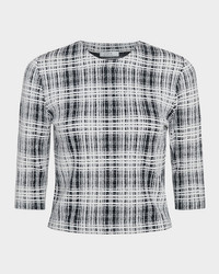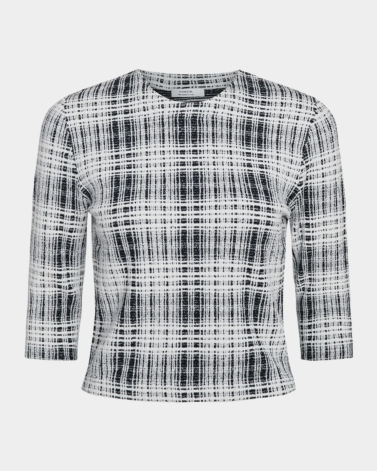 - Vince boucle top featuring a plaid motif - Crew neckline - Elbow-length sleeves - Classic fit - Hem sits at the hip - Pullover style - Cotton/nylon/polyamide/elastane - Hand wash or dry clean - Imported