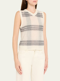 Vince wool sweater vest with ribbed trim V neckline Sleeveless Classic fit Hem sits at the hip Pullover style Wool Dry clean or hand wash Imported Online Inquiries: BGS21_T6TN1| Store Inquiries: #5033781