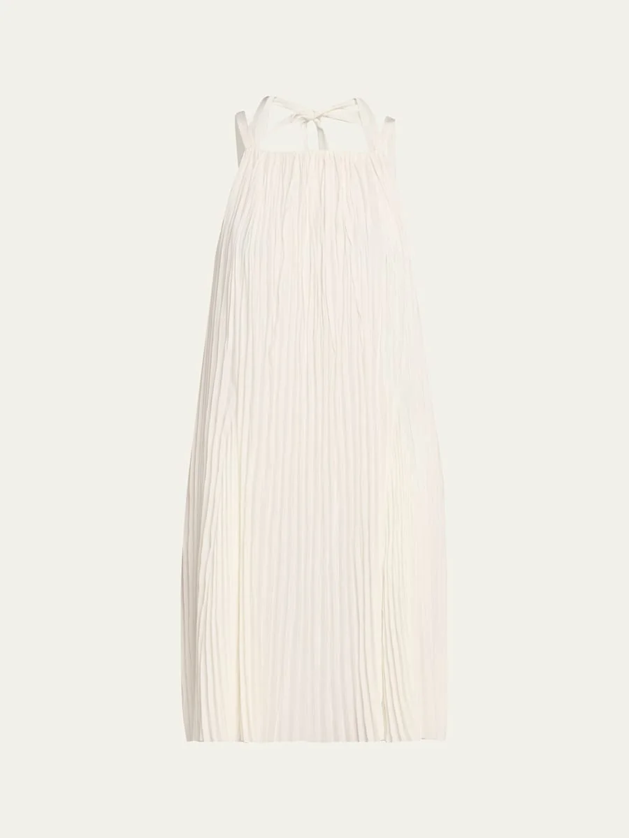 Vince pleated mini dress Halter neckline Sleeveless Side seam pockets A-line silhouette Hem hits around the knee Slipover style Polyester Dry clean or hand wash Imported Online Inquiries: BGS21_T6TYQ| Store Inquiries: #5034979