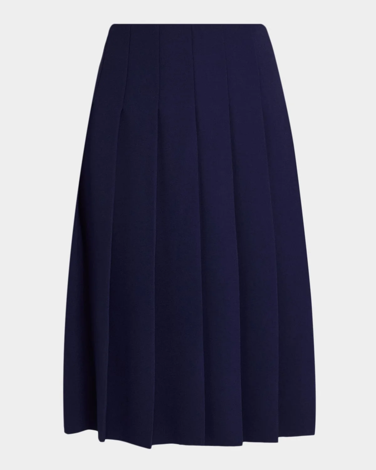 - Vince knee-length skirt finished with pleating - High rise - A-line silhouette - Hem hits around the knee - Center back zip - Polyester - Dry clean or hand wash - Imported