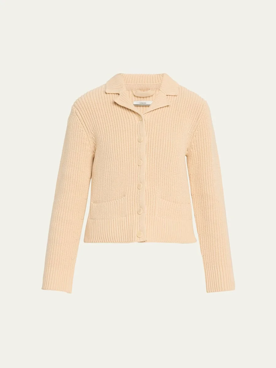Vince ultrasoft cottonblend sweater with front pockets Notched collar Long sleeves Classic fit Hem sits at the hip Buttonfront Cotton/polyester Hand wash Imported