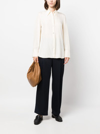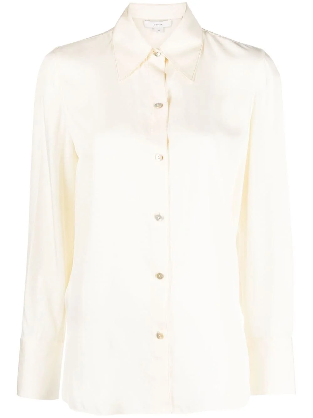pointed-collar long-sleeve shirt Highlights - Light beige - Silk blend - Pointed flat collar - Front button fastening - Long sleeves - Buttoned-cuff sleeves - Straight hem Imported Composition Silk 55%, Rayon 45% SIZE & FIT Model measurements Height 5 ft 10 in(1.77 m) Bust/Chest 35.03 in(89 cm) Hips 35.03 in(89 cm) Waist 23.62 in(60 cm) Measurement LENGTH 28.34 in(72 cm) FittingInformation Designed for a relaxed fit, this piece allows for comfort and movement when worn Made from a midweight non-stretch fabric This piece fits true to size – take your usual size