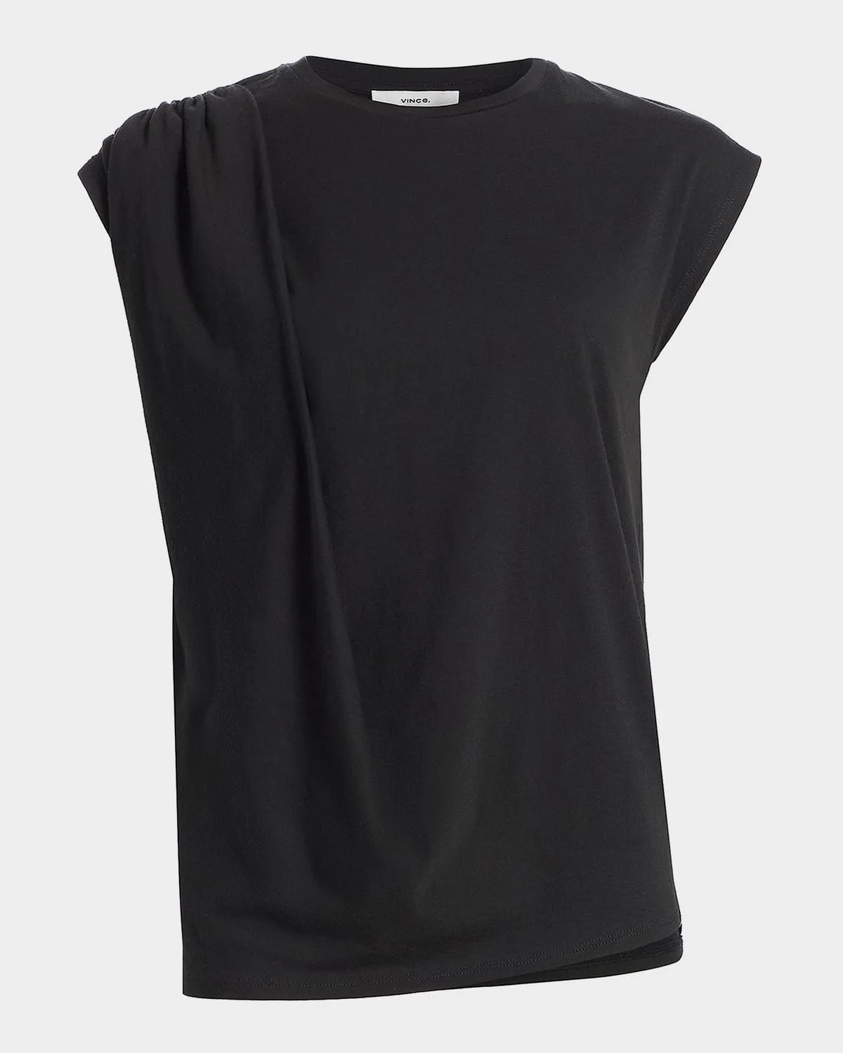 Vince soft Peruvian cotton tee elevated with draping & nbsp; Crew neckline & nbsp; Short sleeves Relaxed fit Hem falls to the hip Pullover style & nbsp; Cotton Machine wash Made in Peru