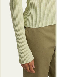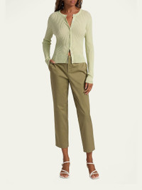 Vince ribknit cardigan with pearlescent buttons Crew neckline; button front Long sleeves Fitted Cropped hem Cashmere/silk Dry clean, hand wash Imported