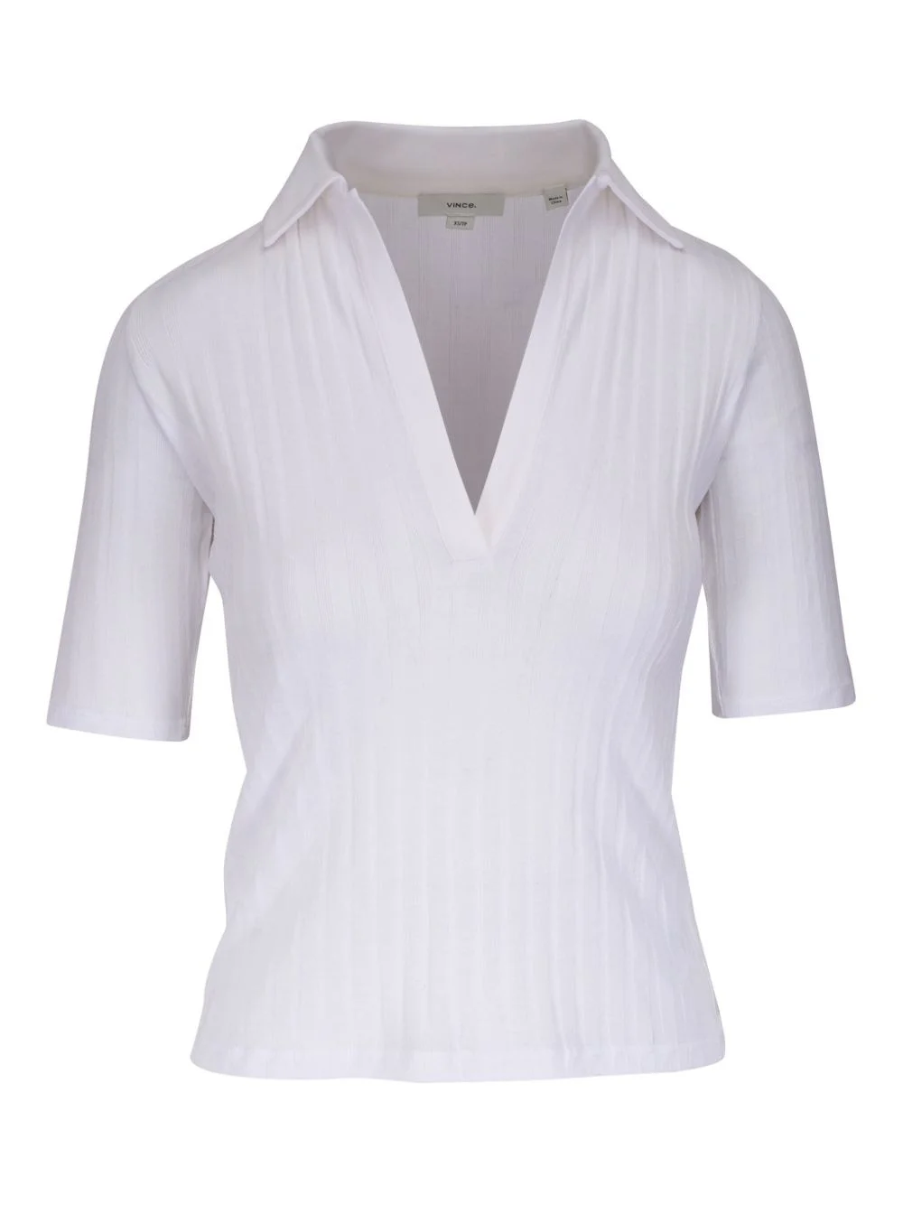 ribbed T-shirt Highlights - White - V-neck - Polo collar - Short sleeves Imported Composition Cotton 100%