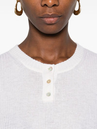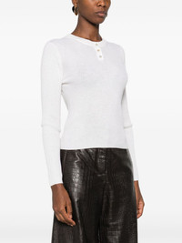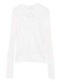 ribbed top Highlights - Off-white - Ribbed texture - Henley neckline - Long sleeves - Button placket - Close-fitting Imported Composition Cashmere 70%, Silk 30% SIZE & FIT Model measurements Height 5 ft 10 in(1.78 m) Bust/Chest 31.49 in(80 cm) Hips 37 in(94 cm) Waist 23.62 in(60 cm)