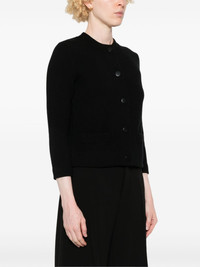 shrunken snap cardigan Highlights - Black - Wool-cashmere blend - Knitted construction - Ribbed trim - Crew neck - Two front welt pockets - Long sleeves - Straight hem - Front press-stud fastening Imported Composition Outer: Wool 35%, Cotton 32%, Nylon 17%, Cashmere 15%, Spandex/Elastane 1% Lining: Wool 70%, Cashmere 30% SIZE & FIT Model measurements Height 5 ft 9 in(1.74 m) Bust/Chest 34.64 in(88 cm) Hips 36.61 in(93 cm) Waist 26.37 in(67 cm) FittingInformation Designed for a relaxed fit, this piece allows for comfort and movement when worn Made with a midweight knit, this piece offers some stretch This piece fits true to size – take your usual size