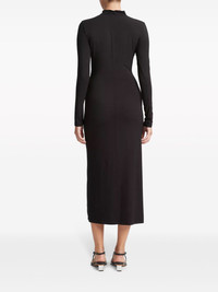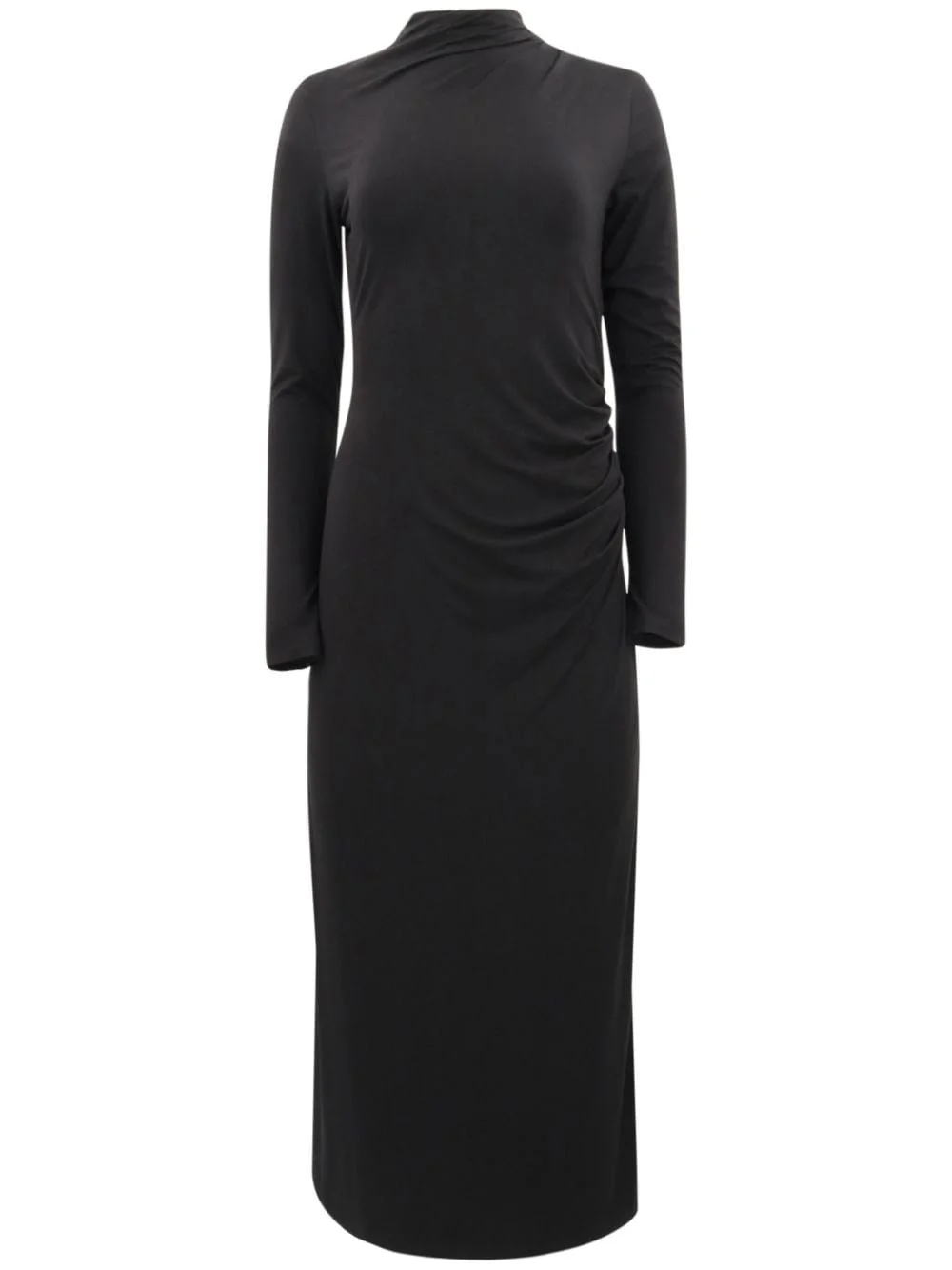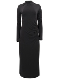 ruched-detail flared midi dress Highlights - Black - Stretch-jersey - Ruched detailing - High neck - Concealed rear zip fastening - Long sleeves - Fitted-cuff sleeves - Fitted waistline - Flared skirt - Mid-length Imported Composition Rayon 92%, Spandex/Elastane 8% Washing instructions Dry Clean Only