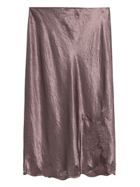 satin-finish midi skirt Highlights - Mauve - Satin texture - Scalloped hem - A-line shape - Midi length Imported Composition Acetate 100% SIZE & FIT Model measurements Height 5 ft 9 in(1.76 m) Bust/Chest 31.49 in(80 cm) Hips 35.03 in(89 cm) Waist 24.8 in(63 cm) Washing instructions Read Manufacturer Guidelines