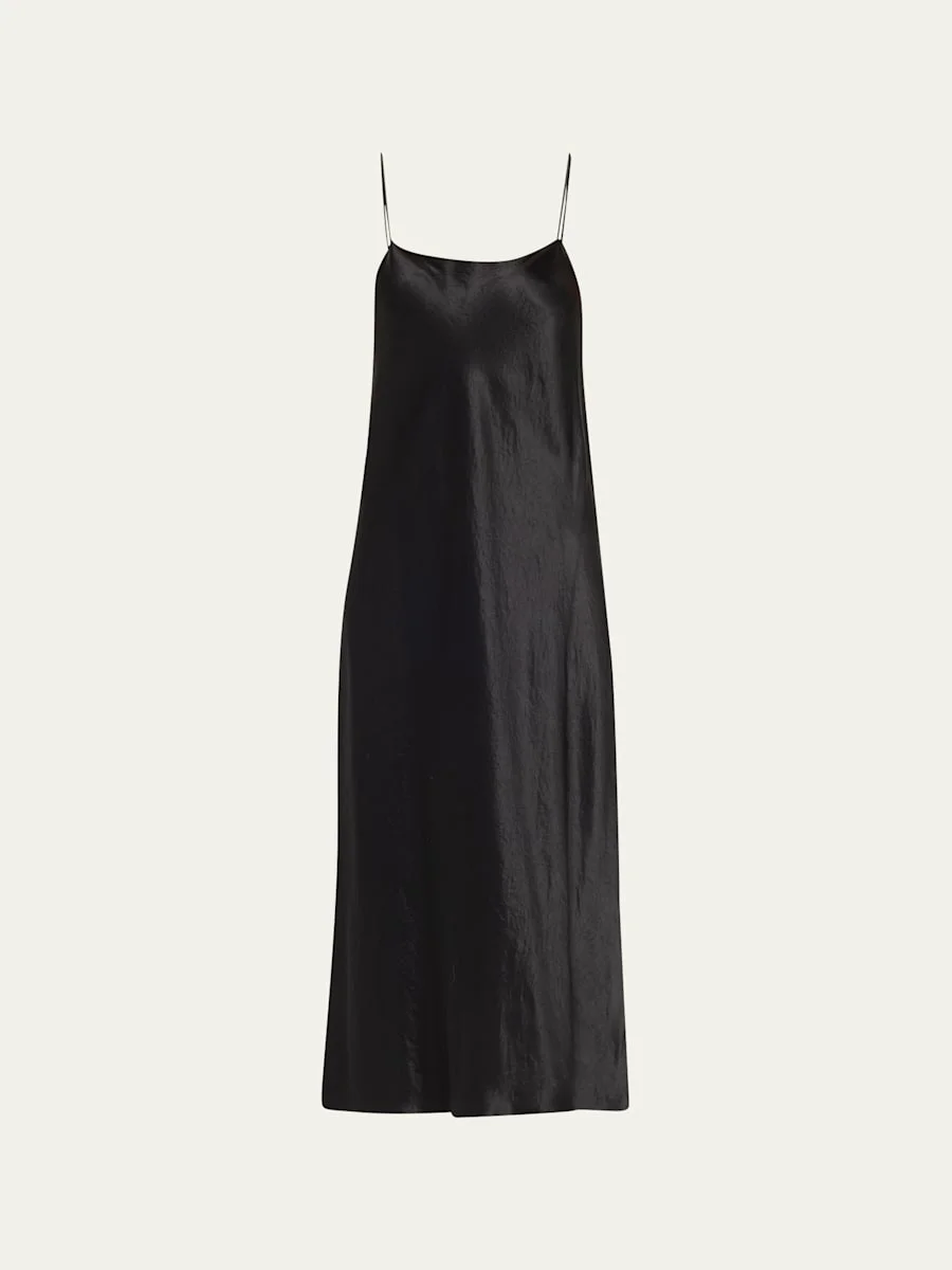 Exclusively ours. Vince satin dress. Scoop neckline. Delicate, adjustable straps. Column silhouette. Midi length. Slipover style. Acetate. Imported. Online Inquiries: BGS21_T8TRP| Store Inquiries: #2913149