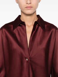 satin shirt Highlights - Burgundy red - Spread collar - Long sleeves - Front button fastening - Buttoned cuffs - Curved hem Imported Composition Silk 100% SIZE & FIT Model measurements Height 5 ft 9 in(1.76 m) Bust/Chest 31.49 in(80 cm) Hips 35.03 in(89 cm) Waist 24.8 in(63 cm) Washing instructions Read Manufacturer Guidelines