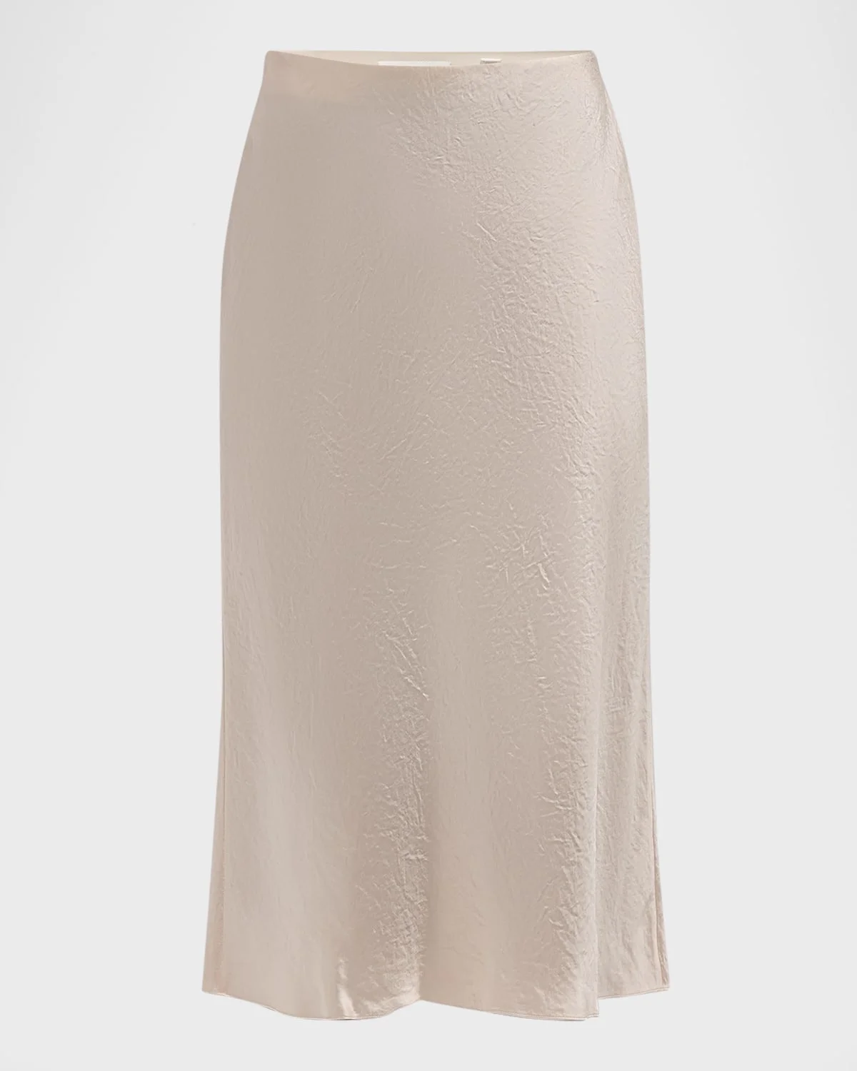 EXCLUSIVELY AT NEIMAN MARCUS Vince slip skirt.A-line silhouette.Midi length.Pull-on style.Acetate.Imported.Size Note: • Model Height: 5 & apos;11"/ waist 24"/ hips 34"/ bust 32" • Model is wearing size Medium