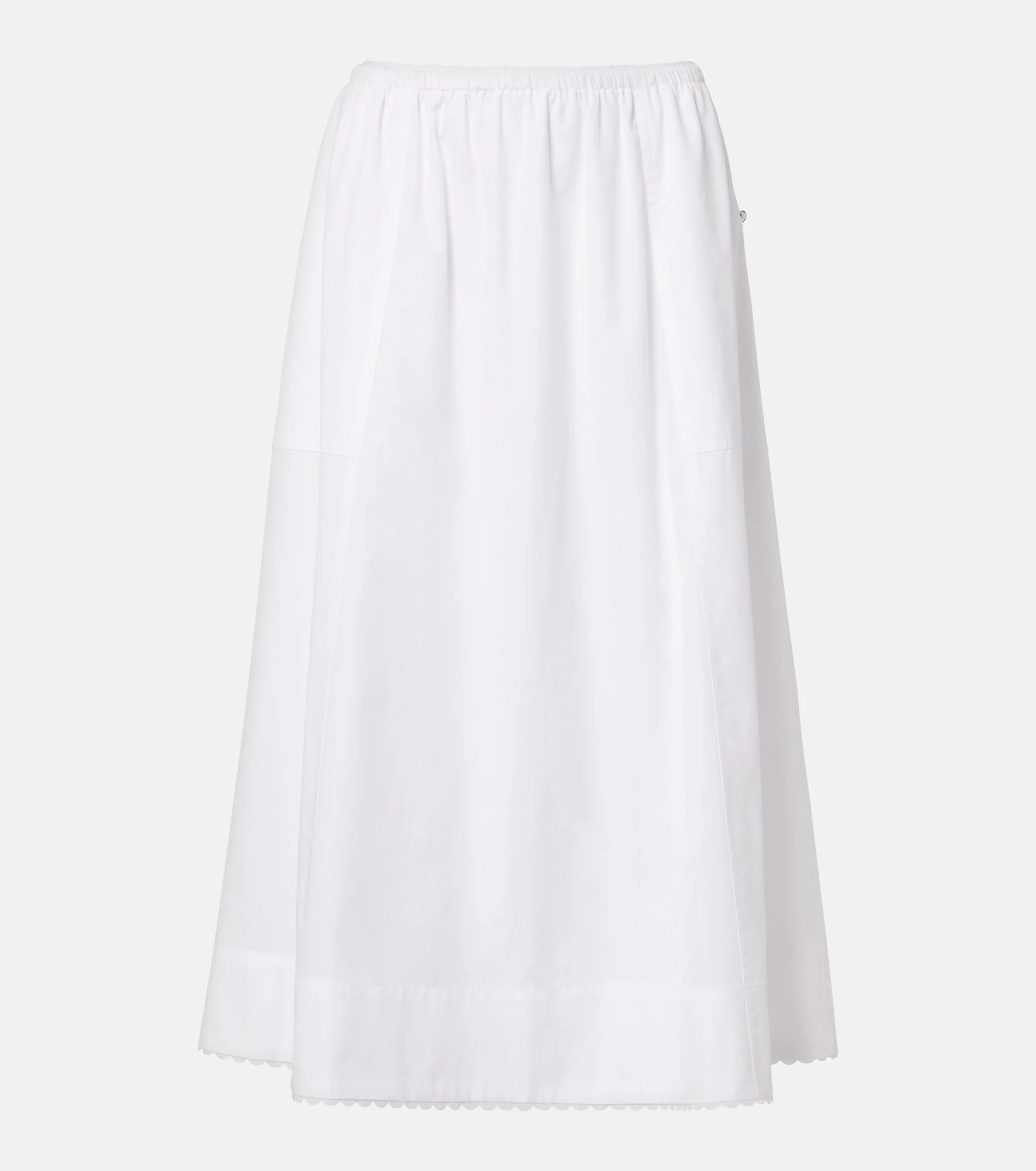 Look to Vince when building a timeless wardrobe of elevated yet understated styles. Made from Japanese cotton poplin, this midi skirt features scalloped edges and an elasticated waistband. Product Details - Material: 100% cotton - Care instructions: hand wash cold - Made in Vietnam - Color: white - Designer color name: Optic White - Lining: 100% polyester - Elasticated waistband - Pockets: slit pockets - Hem: scalloped - Item number: P01153832 Size & Fit - True to size - Elasticated waist - Non-stretchy fabric - High-waisted - The model seen in the picture is 178cm-5'10" and wearing a size XS