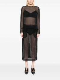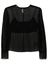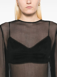 chiffon lace-trim blouse Highlights - Black - Keyhole detail to the rear - Long sleeves - Built-in fabric bra Imported Composition Viscose 100% SIZE & FIT Model measurements Height 5 ft 9 in(1.76 m) Bust/Chest 31.1 in(79 cm) Hips 35.03 in(89 cm) Waist 24.4 in(62 cm) FittingInformation Designed to be unstructured, offering a loose fit throughout Made from a lightweight non-stretch fabric