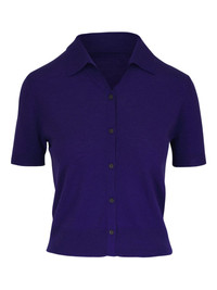 button-down short-sleeve top Highlights - Purple - Short sleeves - Collared neck - Button fastening - Ribbed hem - Straight hem Made in United States Composition Wool 73%, Polyester 21%, Cashmere 6% Washing instructions Read Manufacturer Guidelines