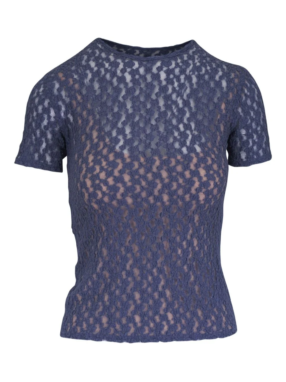 lace T-shirt Highlights - Navy blue - Removable lining - Crew neck - Short sleeves Made in United States Composition Nylon 52%, Cotton 47%, Spandex/Elastane 1%