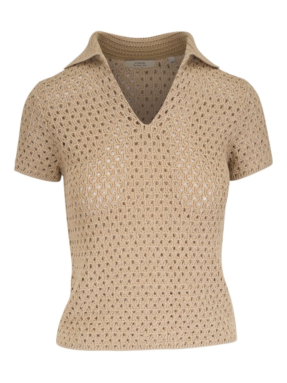 cotton polo top Highlights - Sand beige - Open knit - V-neck - Polo collar - Short sleeves Made in Italy Composition Cotton 100%