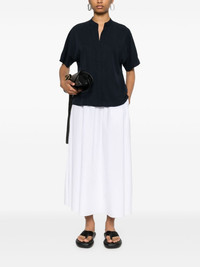 short-sleeves blouse Highlights - Midnight blue - Tencel™ lyocell - Round split neck - Short sleeves - Curved hem - Concealed front button fastening Imported Composition TENCEL™ Lyocell (LENZING) 100% SIZE & FIT Model measurements Height 5 ft 10 in(1.78 m) Bust/Chest 32.67 in(83 cm) Hips 35.43 in(90 cm) Waist 23.22 in(59 cm) FittingInformation Designed to be unstructured, offering a loose fit throughout Made from a midweight non-stretch fabric This piece fits true to size – take your usual size