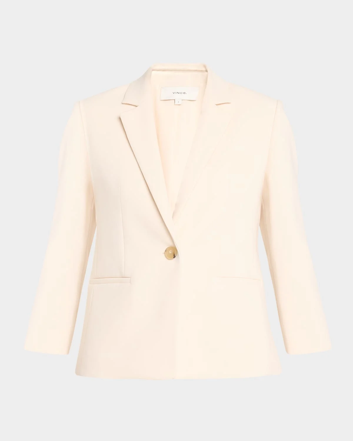 Vince classic blazer complete with twobutton cuffs Notched lapels Bracelet sleeves Front welt pockets Shrunken fit Hip length Singlebutton closure Polyester/viscose/elastane Hand wash, hand wash or dry clean Imported