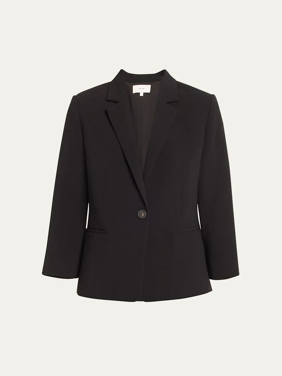 Vince classic blazer complete with two-button cuffs Notched lapels Bracelet sleeves Front welt pockets Shrunken fit Hip length Single-button closure Polyester/viscose/elastane Hand wash, hand wash or dry clean Imported Model is 5'10"/177cm. Online Inquiries: BGS21_T5G2J| Store Inquiries: #4716083