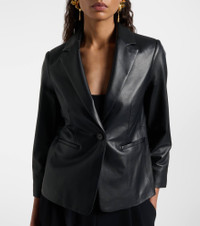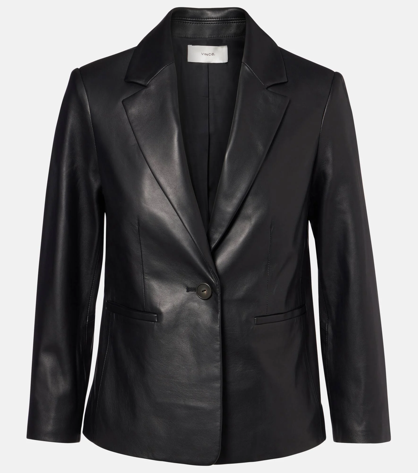 Look to Vince when building a timeless wardrobe of elevated yet understated styles. Not your classic blazer, this style lends a bold personality thanks to its shrunken leather construction and padded shoulders. Product Details - Material: 100% lamb leather - Care instructions: specialist clean - Made in China - Designer color name: Black - Item color: black - Lining: 100% polyester - Notched lapel - Cuff: two buttons - Pockets: welt pockets, internal pocket - Closure: single-breasted (one button) - Item number: P01123840 Size & Fit - True to size - Slightly short sleeves - Shoulder pad inserts - Cinched waist - Non-stretchy fabric - Falls to the hip - The model seen in the picture is 178cm-5'10" and wearing a size US 4