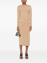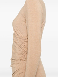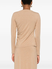 draped crew-neck top Highlights - Beige - Stretch-jersey - Melange effect - Draped design - Crew neck - Long sleeves - Ruched detailing - Straight hem Imported Composition Rayon 91%, Spandex/Elastane 9% SIZE & FIT Model measurements Height 5 ft 11 in(1.8 m) Bust/Chest 32.67 in(83 cm) Hips 35.03 in(89 cm) Waist 25.19 in(64 cm) FittingInformation Designed for a slim fit that sits just away from the body offering a close yet comfortable fit Made from a midweight stretch fabric, this piece offers elasticity and flexibility when worn